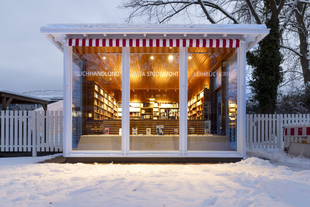 Das kleine Ladengeschäft wurde 1949 vom bekannten Architekten Werner Kallmorgen (1902–1979) für die Buchhändlerin Greta Stolterfoht (1897–1971) errichtet. Mit dem nur 44 Quadratmeter großen Pavillon schuf Kallmorgen ein architektonisches Kleinod: „Nichts fehlt an diesem Gebäude, nichts ist zu viel, ein Gebrauchsgegenstand von vollendeten Proportionen – und, wenngleich recht klein und somit das Sortiment beschränkend, funktionstüchtig bis heute. Die Zier: Bescheidenheit.“, so der Architekturkritiker Manfred Sack. Doch die Bücherstube Stolterfoht ist nicht nur ein architektonisches Schatzkästchen, sondern auch ein Ort Hamburger Literaturgeschichte, an dem sich Schriftsteller und Persönlichkeiten wie Helmut Heißenbüttel und Peter Härtling trafen.